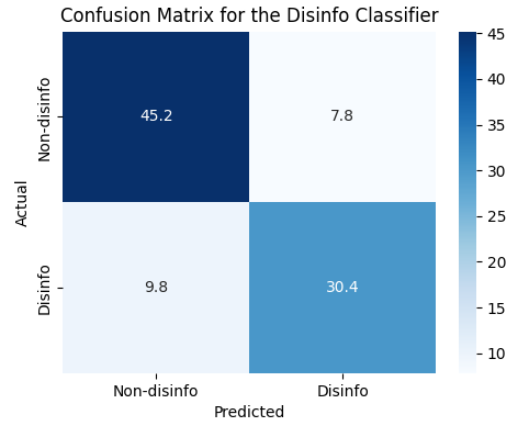 | Non-disinformation | 0.81 | 0.76 | 0.78 | 40.2 |
